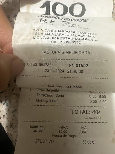 Read morePor lo general la comida suele estar bien pero ayer la comida estuvo mala y la encargada (una muchacha bajita con gafas) fue bastante desagradable y maleducada. Para empezar cuando fuimos a hacer el pedido al mostrador la encargada se puso a echarle la bronca al muchacho que toma los pedidos delante de nosotros lo cuál fue muy incómodo. Luego pedimos una oferta de 5 "hamburguesas" que estaba a 5€ y francamente fue el peor plato que he comido en un montaditos. El pan estaba frío de nevera y dentro no había un pedazo de carne, lo que había era una pizca de lo que parecía una especie de carne desmenuzada con un poco lechuga y otro relleno en cada "hamburguesa" que no sabía a nada ya que dejaba el resto del pan prácticamente vacío. No sé si el plato lo hicieron mal o si así es cómo debe ser, pero no sé lo recomiendo a nadie y sugiero que lo quiten de la carta. Entonces cuando fuimos a pedir a ver si se podría calentarlo aunque fuera en el microondas, la encargada nos dijo con muy mala educación que simplemente estaba frío porque venía de la nevera sin ofrecernos una solución. La verdad nos ha quitado la...