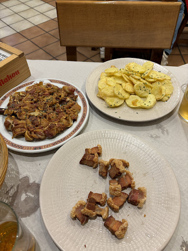 Mi última esperiencia ha sido muy satisfactoria. Subo una estrella. He vuelto a este sitio por referencia de un amigo que frecuenta este establecimiento. Esta vez quedamos ocho personas a cenar previa reserva. Cenamos de tapas, huevos rotos, callos, calamares a la romana, oreja a la plancha y unos boquerones fritos. No puedo deciros que estaba mejor. Yo no soy de postres, pero tienen unas tartas caseras por lo que me dijeron quienes las probaron buenisimas. El trato del personal sencillamente excelente. Nada caro, creo que unos 100€ con sus respectivas rondas de refrescos, cerveza, agua, cafes y...