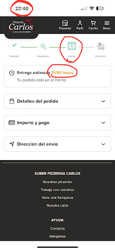 Hicimos un pedido por teléfono el domingo por la noche. Dos medianas clásicas. Nos dijeron que tardarían unos 35 minutos en entregar las pizzas a domicilio. Después de una hora, y ante la falta de noticias, llamamos al restaurante, y nos dicen (tras confirmarlo con nuestra dirección y número de teléfono) que el pedido salió en reparto hace un rato y no tardaría en llegar. Media hora más tarde, todavía sin recibir el pedido, volvemos a llamar al restaurante. Nos atiende otra persona y, tras darle de nuevo todos los datos de teléfono y dirección, así como repetirle lo que habíamos pedido, nos dice que no se ha registrado ningún pedido así y que con ese número de teléfono el último pedido es de hace nueve meses. ¿Cómo es posible eso?