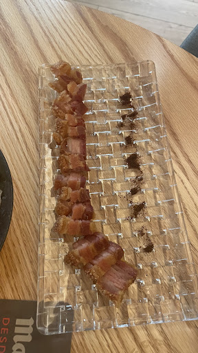 Read moreTeníamos muchas ganas de conocer este nuevo restaurante en Guadalajara y hace unos meses lo visitamos y nos ha encantado. El sitio esta muy bien puesto y la comida nos gusto muchísimo. Éramos 4 personas y pedimos todo para compartir: patatas bravas pata negra muy recomendables, huevo a baja temperatura, posiblemente el plato más flojo de todos pero estaba bueno, surtido de croquetas, que estaban muy cremosas y muy ricas, quizás un poco pequeñas. Luego pedimos 2 principales a compartir también: calamares a la romana, que estaban buenísimos, de los mejores que he probado nunca y un cachopo que estaba riquísimo, nada grasiento y muy bueno. De postre probamos la tarta de queso que estaba también excelente. Con botella de vino y cafés, salimos a 30€ por persona. El encargado super amable, nos atendió estupendamente. Sin duda volveremos. Las dos únicas pegas que pondría son, que tardaron demasiado entre plato y plato pero como no teníamos prisa no nos importo, y que el local es demasiado pequeño por lo que es imprescindible reservar. De los mejores restaurantes de Guadalajara. Con esta primera visita le pondría 5 estrellas.
