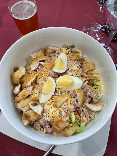 Estafan a los turistas!!! Una pena, pues el pueblo es bonito y no tiene absolutamente nada de turismo, cosa que nos sorprendió, pero solo necesitamos dos días para darnos cuenta del porqué... Quieren hacer el agosto con nosotros los turistas, (como se suele decir) en primer lugar en esta localidad se estila la tapa gratuita con la bebida, pues bien, si eres turista se hacen "los locos" para no ponértela. Después de varias rondas de bebidas y viendo que en todas las mesas cada vez que pedían una ronda sacaban alguna tapa, me levante y se la exigí. Después pedimos varias tapas, antes de describirlas diré que en la carta ponía 3 euros la tapa y en la cuenta nos cobraron 3.30,) una tapa que me hizo mucha gracia (sarcasticamente) fue presa iberica con foie, que consistió en una pequeñísima y fina presa ibérica con un trozo de patè en lo alto. Después el revuelto campero también es gracioso, la descripción era papas fritas con huevo y jamón, aquello fue papas tiesas con huevo revuelto y un adorno de jamón de 2 centímetros coronando. Y ya ni que decir tiene que nos sintieramos estafados, si pedimos para terminar dos vinos y en plan postre le preguntamos si nos podrían poner un aperitivo de esos gratis de queso, nos dijeron que si, que por supuesto, y nos traen un platito algo más grande que el aperitivo, (de un queso que antes habíamos estado hablando con la camarera; es un queso que cuesta una buena bolsa 2,50 y se puede comprar en cualquier cash, no vayan a pensar que estamos hablando de un queso gourmet) y nuestra gran sorpresa fue, que al ver la cuenta nos habiam soplado 5,50 euros por la tapa de queso que encima se llevó casi entera para atrás... le dije que habíamos pedido un aperitivo y me dijo que el había entendido una tapa, vale de acuerdo, pero donde se ha visto que una tapa de un queso barato cueste 5,50? Igual fue nuestro asombro con el vino, pedimos copas de vino de la casa, incluso llegue a decir "uno baratito" (pues ya habiendo descubierto el plan que se traian con nosotros temia que nos la clavaron en el vino) y al ver la cuenta, nos habían cobrado 2,20 por cada copa de vino! En fin, resultado final: 29 euros euros de cuenta, con 3 tapas y 6 bebidas más la estafa del queso. Comida muy regular tirando muy para mal!