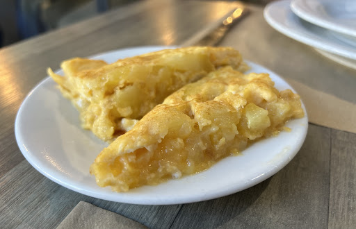 De aperitivo nos pusieron tortilla de patata. Muy rica, no la mejor que hemos tomado pero si de las que te deja con ganas de más lo cual no solo es una muy buena señal si no una excelente forma de comenzar. Junto a la tortilla nos pusieron dos panecillos los cuales sabían a ajo, no sé si es lo normal pero la verdad es que nos sorprendió encontrar este tipo de pan en un lugar así para acompañar el resto del menú.