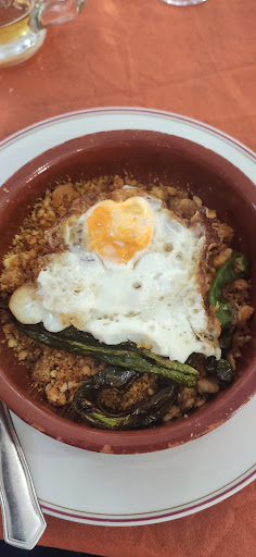 Read moreNi os se ocurra comer allí. Fuimos a un menú de 16 euros. Pido migas, que eran completas, y llegan con un huevo y trozos de chorizo, sin pimiento ni panceta, que según la carta es lo que eran las migas completas. De se segundo un pequeño trocito de bacalao rebozado, que es lo que llevaba. Una vergüenza. El pimiento y la panceta pregunté por ello y me dijeron que se les había acabado, que perdonaremos. Fuimos porque estaba todo lleno, pero si vuelvo por allí me como un bocadillo en una tienda antes que pisar por aquí. Es para denunciar y no pagar porque se me ha acabado el dinero como me han dicho. En el mencionado menú, a las 14:00 no tenían ya parte de los platos que lo componían. Para más INRI, pedimos unas consumiciones antes de comer y también se les acabó el día antes la coca cola zero. En fin, un desastre, nunca he conocido algo igual.......... Os recomiendo que no vayáis, porque de hacerlo os arrepentireis. En vez de calamar unos chocos durísimos. Y edito porque me contesta...."no quiera pagar poco y comer mucho" . No se trata de pedir menú o pedir carta, el problema es que las migas solo eran migas con un huevo, y los calamares a la romana eran tres tiras de choco como se observa en la foto. El bacalao solo rebozo, tenía 1 cm de altura. Vaya una cara que tiene la tía, la culpa fue nuestra que pagamos, cuando tuvimos que llamar a la policía por estafa y denunciarlo y sin...