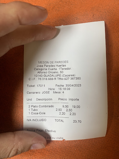 Read moreSupuestamente es un restaurante, pero parece otra cosa, no se si es que era por el día o es que existe una mala gestión. Se llena porque Guadalupe es visitadas por muchas personas, pero estoy seguro de que si estuviera en otro lugar, este sitio estaría cerrado. Me recuerda a los bares de “Pesadilla en la cocina”, parecía que en algún momento iba aparecer Alberto Chicote. Ahora cuento porque mi reseña de una estrella, entramos un domingo a las 13:50, no nos toman nota de la bebida hasta las 14:25, tenemos que levantarnos para pedirle la carta a otra mesa, se notaba una clara falta de personal, el camarero sabía perfectamente que no funcionaba bien, el tenía que disculparse. Como solo teníamos una carta (menú y combinados), mi chica pidio si había otra disponible, con raciones y tapas, el camarero nos dice que no, que estos días con tanta gente solo sirven menús y combinados, por lo tanto pedimos dos combinados, a los 5 minutos sale otra camarera repartiendo la carta de raciones a la mesa de al lado!. La justificación del camarero es que ella es la dueña y hace lo que quiere. Al final comimos, no son gran cosa. Al camarero le doy un 10 porque el marrón al final es el quien se lo come, no creo que tenga la culpa de la mala gestión. Acepta pago...
