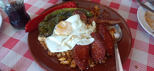 Read moreFuimos por las buenas reseñas y nos sorprendió incluso. Si vas con prisa no es tu sitio. Se trata de un negocio familiar en el que priorizan la calidad de la atención al cliente a la cantidad de mesas que sirven, por lo que tuvimos que esperar una media hora. En la cocina está la mujer y el marido es el camarero. Comimos una ración de migas "completas" (pimiento rojo y verde, panceta, chorizo y un huevo frito).....excelentes!!!!! Queriamos probar la morcilla típica de Guadalupe y tuvieron el detalle de ponernos una tapa ... que madre mía....enorme la tapa y calidad tremenda! Y una ración de bacalao dorado que estaba espectacular, además de que las raciones son muy muy generosas y acabamos tan llenos que no tomamos ni postre aunque también oímos que eran caseros. En general la cantidad que ponen por el precio de las raciones es brutal. Recomendamos ir. No os defraudará. Huid de la plaza...