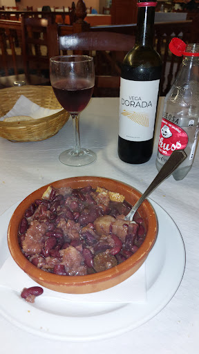 I chose this restaurant due to it having a terrace and its google rating. They have a weekend lunch menu for 18 euros. We all went for the lunch menu, I chose the judiones as a starter and the stewed pork cheek for a main. The judiones(massive beans) were stewed with pork belly and smoky chorizo, and the portion was almost big enough to be a main course. The pork cheek was so tender you could eat it with a spoon, and it was also large, and served with a pile of fries. The red wine included in the menu was one of the most decent I have had included in one of these menus, I went for the ribera del duero. For dessert I went for the chocolate cake, which was ok, but didn’t taste homemade like everything else. The waitstaff were very affable and treated everyone like friends. This was a good and massive meal for a great price. I will...