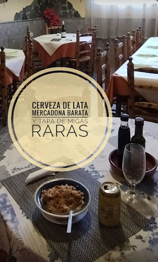Read moreEl sitio es de comidas típicas, no sabíamos si comer el menú de 11,95€ o tapas. Finalmente tapeamos y la verdad, no me gusta los sitios que no te dejan elegir lo que vas a comer (entiendo que en cada sitio lo hagan diferente). La primera tapa era de carne con tomate y estaba riquísima y casera, la segunda mezclaron trozos de cerdo con pollo empanado (no tenía sentido mezclarlas) no estaban ni bien ni mal… pero se nos ocurrió decir que a ver si nos podían poner migas y fue un chasco tremendo. Mira que me encantan de todas las maneras, pero estas eran de pan y a eso sabían. A pan desmigajado. Cero sabor y con unos trocillos de melón y poco más. Dentro hay poco espacio. Lo mejor es...