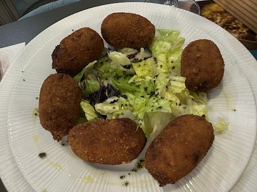 Muy caro en comparación con otros bares cercanos similares.Fuimos por recomendación pero solo tomamos una ronda de bebidas.La verdad que la comida no la puedo valorar ya que no pedimos nada.Olía muchísimo a aceite quemado en la calle lo cual es señal de que va mucha gente y se vende mucho pero por ese motivo habría que cambiar más el aceite o algo, y lo segundo es la mierda que tenían las cartas nos dio tanta cosa que no nos atrevimos a pedir nada de comer.Cuando nosotros fuimos solo había tres mesas llenas y 4 camareros hablando y fumando en la puerta(que no lo critico somos personas y necesitamos nuestros descansos ) pero por lo menos en esos ratitos de poco trabajo alguno podría limpiar un poco las cartas para no quedarte pegado.Una pena porque tiene muy buenas reseñas y recomendaciones y si no fuera por eso nos hubiéramos quedado. Para ir con niños está genial porque es una placita peatonal sin...
