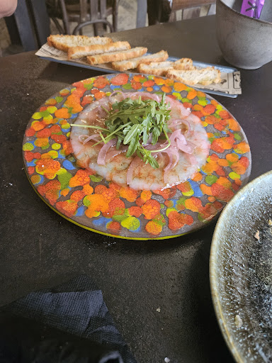 Havíem reservat per anar a dinar per 4 persones, ens van recomanar que hi anéssim que el menjar era molt bo. Ens ha costat una mica trobar-ho ja que és un carrer on s'hi ha d'accedir a peu. Una vegada hem arribat es un local ben curiós, m'ha cridat l'atenció la decoració els sostres alts, amb un parell de grans ventiladors, ( que avui hem enganxat un dia de molta calor, i no donaven l'abast...) les taules, el gran mirall amb dos arbres dibuixats a la paret seguint dins el mateix mirall.... Molt pintoresc i a la vegada lolt acollidor. M'ha encantat😍. La Gemma ha vingut a explicar-nos la carta que d'una manera molt original esta penjada en pissarres a la paret. Una noia oberta , simpàtica amigable i molt propera, que de seguida es fa amb la taula i fa que t'hi trobis com a casa, fent broma i acollin-te molt be. El menjar ha estat espectacular. Hem compartit uns platets entre els 4, les racions prou generoses, unes croquetes de rostit cruixents, que es notava que eren casolanes, boníssimes una ració de 5 unitats. Tellerines a la planxa, amb amanit senzill d'oli pebre i sal... no necessitaven res més... increïblement bones, hem acabat sucant pa tots 🤪. Ceviche molt bo també amb un puntet picant. Com a plats principals. Un Xuletó a compartir, una carn boníssima, al punt de coccio que se li havia demanat... per alguns quasibe crua.... però per gustos colors😉. Un arròs sec de calamar i butifarra.... que estava brutal!!!! Boníssim, tips que estàvem però no podíem deixar-ne ni un gra.... De veritat que tenia un sabor molt intens. De postres un mató i mel també molt bo. I un parell de trufes de xocolata negra que es desfeien a la boca , que estaven bonissimes. Tot acompanyat d'un bon vi. Tornarem segur pero cap a la tardor quan la calor deixi d'apretar tant.... TOTALMENT RECOMANABLE!!!! Ahhhh i ens hem emportat l'os del xuletó i n'hi ha dos a casa que també s'han posat...