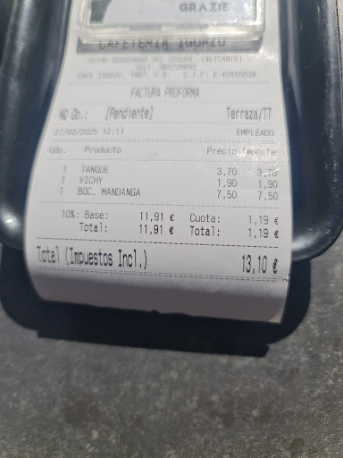Read moreNo pidáis nada más que un café o un quinto Nos sentamos a tomar un quinto y una tapa de ensalada de bocas de mar. Cuando pague me asombró el precio pues 3,50€ por un cuenco pequeño como el que te pongan de frutos secos me ha parecido excesivo pero lo peor la forma y contestación de la mujer que me fuera a otro sitio más caro. Trato pésimo, no aceptan ningún comentario. Educadamente le dije que por esa cantidad no me parecía bien en ningún momento se falto al respeto, más bien no se acepta ningún comentario que no sea el que ha...