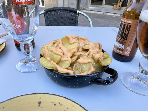 Decepcionante la verdad. No puedo comentar sobre sus tapas porque por desgracia da la impresión de que depende lo que pidas, te lo sirven o no. Debe ser que una tapa de bravas además de bebida por supuesto no les interesa. Llegamos un poco antes de las 22h creo recordar. El primer aviso es que la cocina va a cerrar pero que sin problema nos atienden. Mientras tanto varios avisos por parte del camarero a mi modo de ver demasiado comercial para un bar, o gastro bar, que por cierto también nos explico lo que significa, como diciendo que allí no se va a llenar el buche sino a degustar cuatro croquetas a un precio criminal. Al rato nos cuenta una milonga a cerca de que no les quedan patatas porque están en mal estado. ¿Y se dan cuenta a las 22 h? Patatas en mal estado? Un bar que no tenga patatas? Supongo que sí hubiéramos pedido croquetas, boquerones, y otras cosas, no hubieran tenido problema en hacernos las patatas.... Pues oiga! No las ponga en su carta. Estábamos haciendo un reportaje sobre las exquisitas tapas de bravas en la región para nuestro blog de gastronomía y turismo y ustedes se han quedado sin participar, una pena. Por cierto el reclamo de tenemos horchata en la pizarra de la puerta, con nosotros funcionó, pero no esperábamos que fuese horchata de brick. Una buena propuesta de negocio pero...