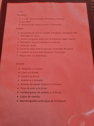Read moreNo pongo 10000 estrellas porque no se puede. Paramos en este restaurante por casualidad, al preguntar por una mesa justo tenían una libre. Al entrar descubrimos un salón pequeñito pero muy acogedor, el típico sitio que te causa buenas sensaciones porque tiene pinta de familiar. Tienen un menú que sale por 23€ por persona el cual incluye un entrante, un primero, un segundo, postre y bebida. Yo como de todo, pero mi novia no come carne. Le preguntamos a la camarera que si había alguna posibilidad de pedir dos primeros ya que todos los segundos llevaban carne, nos dijo muy amable que no había ningún problema. Cuando llegó la hora de pedir yo tenía claro lo que quería y me decanté por la brocheta, canelones y la butifarra, pero mi chica no estaba convencida y volvió a hablar con la camarera para preguntarle que si había algún tipo de pescado fuera de la carta, nos dijeron que no, pero de repente la camarera le preguntó, eres vegetariana? A lo que contestó que si. Quedamos increíblemente sorprendidas porque le ofreció hacerle un plato con cosas variadas pero sin carne. Les agradecimos varias veces el detalle ya que no en todos los sitios hacen algo así. La crema de verduras que se pidió ella estaba riquísima, sabía como la que me hacía mi abuela cuando era pequeña. Los canelones buenísimos, caseros caseros y con la butifarra casi pierdo el sentido, realmente buena. Mi chica quedó encantada con su platazo variado. De postre las dos nos decidimos por la crema catalana y la verdad es que la recomendamos a todo aquel que vaya. La guinda de todo esto fue el trato excelente del personal que trabaja allí, tanto Judith, como Olga y Mª Ángeles hicieron que la experiencia fuese aún mejor. De verdad que no hay cosa que valore más qué que te atiendan con una sonrisa y te hagan sentir como en casa, el trato humano ha sido increíble. Volveremos!!!!!