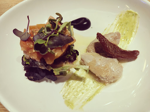 ¡Sensacional! Un restaurante de estilo vanguardista en el centro de Gernika, que no escatima en producto y ofrece unos platos deliciosos. Lo descubrí después de visitar el bosque de Oma, ya que después de explorar otras opciones g-astronómicas más locales decidí probar suerte en el cercano pueblo de Gernika. Tengo que decir que acerté de pleno, y recomiendo el trayecto a cualquiera que se encuentre relativamente cerca a la hora de comer. Elegí el menú por su variedad y calidad, muy competitivo económicamente. De primero una ensalada templada deliciosa y bien equilibrada. De segundo un rape a la brasa fresquísimo con el que sueño todavía; jugoso y al punto, excelentemente presentado y con un sabor impresionante. Y para terminar, unas torrijas caseras exquisitas y muy cremosas. Repetiría todos los días. El personal muy agradable, me trató con mucha simpatía y profesionalidad. Mención especial en estos tiempos que corren: cumplen a rajatabla las medidas de seguridad y el local está impecable. En resumen, extremadamente recomendable si visitas Gernika y alrededores; yo no...