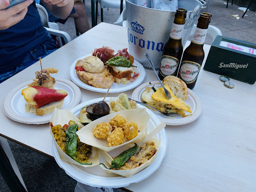 Read moreUnas cervecitas y algún pintxo, bastante bien, con la barra a rebosar de pintxos de todo tipo, color, sabor, olor y con buen tamaño a precio popular. Estando disfrutando de ello le han preguntado al camarero que cuantos pintxos habían vendido el día anterior y éste les dice que MIL SETECIENTOS!!! Guauuu!!! y los clientes que preguntaban me han parecido "parroquianos de a diario" En fin..., yo pude ver en la barra en el tiempo de beber una cerveza que pidieron algunas docenas de ellos. Está situado en una preciosa plaza y también vi que tenían un menú variado y a precio popular. Buena pinta, de vista...