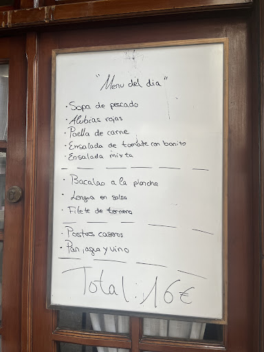 Read moreA real gem of restaurant hidden in the back of the bar. Pre-fix 3 course menu or off a menu, includes a bottle of local red, bread & water. Every dish was an amazing- Tina & tomato salad and meat pallea to start, bacalas a la placha and beef tongue ( both amazing!!) and a selection of delicious desserts . Friendly service and full of locals. Price was 16 euros a person enjoyed coffee in the bar afterwards If there is a wait, enjoy a drink at the bar...
