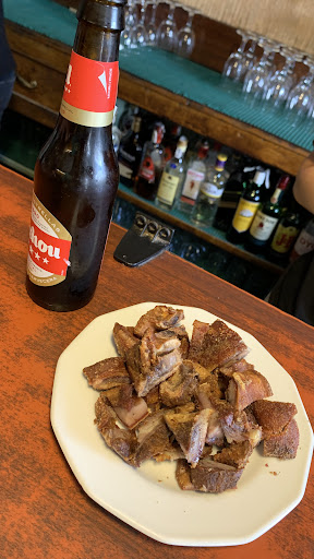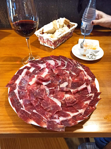 Read moreEn pleno centro de Guijuelo (plaza Mayor) este pequenno local ofrece variadades derivadas del cerdo. Su poco espacio interior se intenta compensar con una amplia terraza exterior (en general con altos taburetes), aunque el clima de Guijuelo ('frio serrrano') no permita demasiadas alegrias. Bueno, el trato no es el fuerte de la casa, te sirven con cara de pocos amigos, ni tampoco te regalan la clasica tapita; pero los productos del cerdo (para quien le gusta el colesterol, por supuesto) son de buena calidad, entre ellos el apreciado jamon con denominacion local. Precios habituales. Por tanto, lugar para ir sin mas al crudo del asunto, no precisamente para disfrutar...