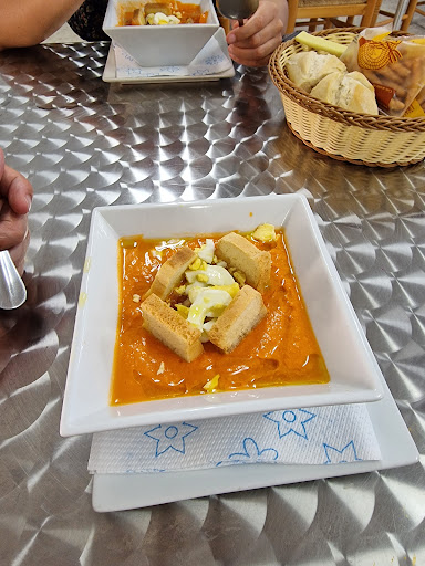 Supongo que este local cada año lo arrendara una persona diferente, por lo que las opiniones antiguas no serán muy válidas En principio hay menú para comer, ni afuera ni dentro va a ver el precio por ningún lado, no sé cuanto vale... El salmorejo era casero, y los segundos platos podrían ser pasables dependiendo el precio del menú De postre sólo hay café o un helado industrial Para beber pedimos 2 jarras grandes de cerveza, de unos 750 ml, precio total 23e, por supuesto sin factura Intuyo quedan inflado un poco el precio, ya que en la lista de precios era todo muy barato El comedor estaba fresquito, con aire acondicionado Había...