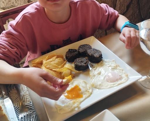Read moreMuy buena experiencia, en este pequeño pueblo de la ribera. La verdad me sorprendió. No esperes un precio de ganga, es un Mesón y tiene precios como cualquier otro establecimiento en una ciudad más grande, ya que dispone de una carta elaborada y variada. La verdad aquí los precios están muy acorde con la calidad y la cantidad de las raciones, porque nos vamos a encontrar raciones generosas. Tienen un surtido de ensaladas muy sabrosas y en los segundos probamos los pescados. Una buena tajada de bacalao al pil-pil exquisito y fuera de carta, la merluza del chef impresionante (siento la foto que ya estaba empezado el plato). Todo en su punto y con sus salsas bien presentado. Muy ricos también los calamares en su tinta y sin desmerecer al típico plato de huevos fritos con patatas y morcilla burgalesa, que se pidieron los niños. Mención especial sus croquetas caseras de jamón y la de bacalao. Han recibido premios por mejor tapa, y doy fe que ambas están riquísimas. La carta de carnes tiene muy buena pinta, otra día nos acercaremos a probarla. Si te gusta la cocina castellana y bien elaborada, aquí comerás muy bien. Y siempre acompañado de un buen vino Ribera del Duero, que no falte. Los postres son los típicos caseros pero también riquísimos: tarta de queso, flan, arroz con leche. Aunque yo me pedí un postre que había un contraste entre chocolate caliente y helado frio, muy original. El servicio de 10, amabilidad, buena atención y pendientes de que todo estuviera correcto. El local está limpio, había buen ambiente y la decoración es la típica castellana, acogedora y original pues es un lagar antiguo, que conserva la viga, el husillo, la piedra... Fuera tiene una pequeña terraza cubierta. Y hay un aparcamiento al entrar y luego al fondo, para que no tengas problema de estacionamiento. Lo recomiendo sin lugar a dudas, hoy día es difícil encontrar sitios que la calidad/cantidad sea acorde con el precio y encima...