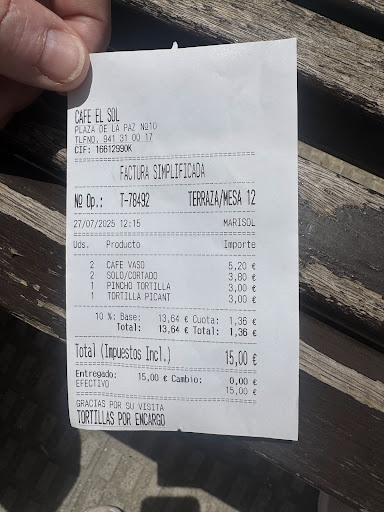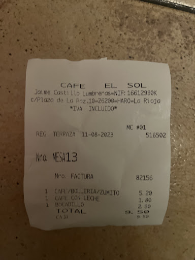 We just had 2 double coffees and a Spanish omelette here. The coffee was average and not very strong... the tortilla also average. The price €15 is exorbitant - we were charged 5.20 for the 2 coffees in a glass and then and extra 3.80 for the extra shot = 9 Euros for 2 coffees. We have never, ever paid that much for a coffee - neither in Spain, Ireland, Austria or anywhere else we can remember. When we mentioned it to the - very pleasant - waitress she said she was sorry. Then the owner appeared and practically told us we were lying about prices in San Sebastian and elsewhere. Told us it was because we’re in Haro... These are their prices that’s fine but to me it is total extortion and not a nice experience for us. Not only was the quality below average but the attitude of the owner leaves a lot...
