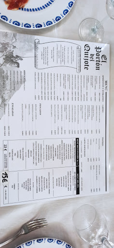 Menu del Día at 15€ including a drink and desert was very good. My merluza was delicious and served with parsley and potatoes (al pobre). I loved that the top of the fish had been grilled beautifully. The salad of tomato, crunchy lettuce and green pepper was fresh and tasty too. My only complaint was that everything was sprinkled with rock salt, more so than anywhere else I've been. That being said, I would definitely recommend Restaurante Mesón El Portón del Quijote. The restaurant was nicely busy and is clearly popular.
