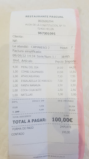 Read moreCarísimo no... lo siguiente. Se aprovechan de la alta rotación de clientela al ser un bar en plena autovía de Murcia a Albacete-Madrid y los precios son más que abusivos. El invierno pasado por una ración de migas me cobraron 8 euros y, según el camarero, no me cobró el huevo frito que le pedí le pusiera por encima. Hice propósito de no volver a parar más... y lo debería haber cumplido Esta mañana, por estar cerrado el bar de enfrente, he vuelto a parar a desayunar en este bar y... más de lo mismo. Otro atraco: dos croisants, un café con leche y un cola-cao: 8,7 €; a 2,40 € los croisants (para más inri, eran como mínimo del día anterior). Definitivamente, no vuelvo a parar nunca más, estoy harto de que abusen con los precios. En dirección Albacete, a unos pocos kms (no más de 3 ó 4), en la primera salida de Hellin, junto a una gasolinera, hay un bar la mitad de barato ( he preguntado a cuanto cobran los croisants y me han dicho que a 1,2 €) Ah, el local está lleno de carteles de que no hay servicio de mesa, lo cual podría justificar en parte el alto precio que cobran... pues ni eso. Te lo pides en la barra, lo pagas nada más servirlo, te lo llevas a la mesa y te cobran como si te hubieran dado servicio premium. Adjunto el ticket...