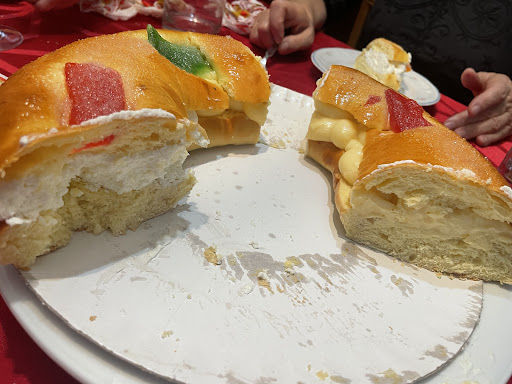 Read moreLa primera vez que compré un rosco este año en diciembre estaba espectacular pero después los siguientes han estado malísimos, los últimos que encargué para el día de noche buena fueron directamente a la basura, uno sin relleno y otro relleno de nata, estaban tan secos el mismo día que los compré que no se podían...