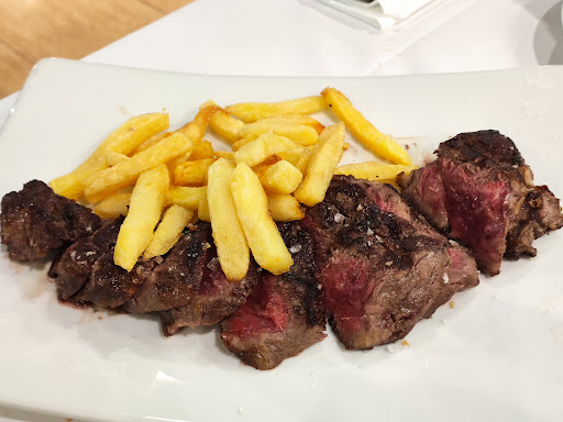 Read moreHoy he alucinado con el trato y sobre todo las explicaciones del personal... Teníamos poco tiempo para comer y preguntamos si podíamos medio menú... La camarera después de consultarlo nos dice que sí. Pedimos entrecot, por favor uno de ellos casi crudo y el otro al punto. Pues bien, nos traen dos entrecots hechos de más con unas patatas que parecían cocidas en lugar de fritas. Un desastre. Pedimos un postre y un café solo y para beber agua con gas... Cuál es nuestra sorpresa cuando miro la cuenta y nos cobran el café y las aguas aparte... Pregunto y me dicen que no entra... Perdona? Si no hemos comido uno de los postres. Contestación : Haberlo pedido para llevar... Yo alucinando le digo, pues vale pónmelo.... No vuelvo ni loca y como sigan así no creo que les vaya muy bien. Ah.... Es que por lo visto nos hizo un gran favor porque tampoco dan medio menús... Para remate había que ver el postre que me pusieron para llevar......