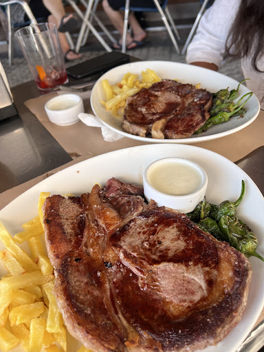 Pues sinceramente no íbamos a venir aquí en un inicio y ha sido un acierto absoluto. Entrate cojonudo de Txipis, recomendación del camarero que hace la estancia en la taberna infinitamente más agradable. Que buen trato!. De primero Bacalao a la Vizcaína y Pescadito del día. El bacalao ni una misera raspa y tanto el producto como la salsa increíbles. El pescado del día: Bonito con tomate. Poco hecho pero en su punto perfecto. La salsa de tomate, casera y entera, que acompaña a la piperrada como anillo al dedo. Lo hemos devorado la verdad. De segundo, a compartir entre dos ,igual que el Bonito, costillas de cordero con ajito y patatas caseras. Que bueno, que sabor tenía cada costilla y las patatas perfectamente crujientes. El plato ha quedado limpio y rebañao', exactamente igual que con el resto de platos. Llegaban, y se acababan en cuestión de 10 minutos. Invitaba a no dejar ni una hoja de lechuga que acompañaba a las costillas.