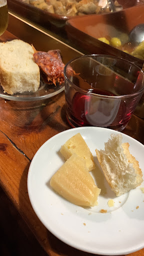 Read moreNos encanta conocer pueblos por toda España y comer en lugares auténticos, sin pretensiones,ni postureo... Con comida casera de verdad. Reservamos mesa, el lugar es tremendamente estrecho, oscuro e incómodo. Nos ponen en una mesa pegada a la pared, diminuta; de la que tuvieron que echar a dos personas que estaban sentadas tomando una consumición, nos sentamos con gente dándonos golpes al pasar y los clientes de la barra a un palmo de nuestra mesa. Muy estresante. Los taburetes incomodísimos. En la barra un cartel: "Aquí la comida no va en lata, tenga paciencia". Bien, al menos comeremos bien, pensamos. Salmorejo de tetrabrik ligeramente ácido. Croquetas que no eran caseras, callos de lata. El magro era de verdad pero hecho con menos amor imposible, no parece el magro típico extremeño. Hecho en filetes y a la plancha con ajo en polvo por encima. Aún así, bebiendo agua para dos y sin postre, más de 20 euros por persona. Al menos, los camareros eran amables. No volveremos y por supuesto, no lo...