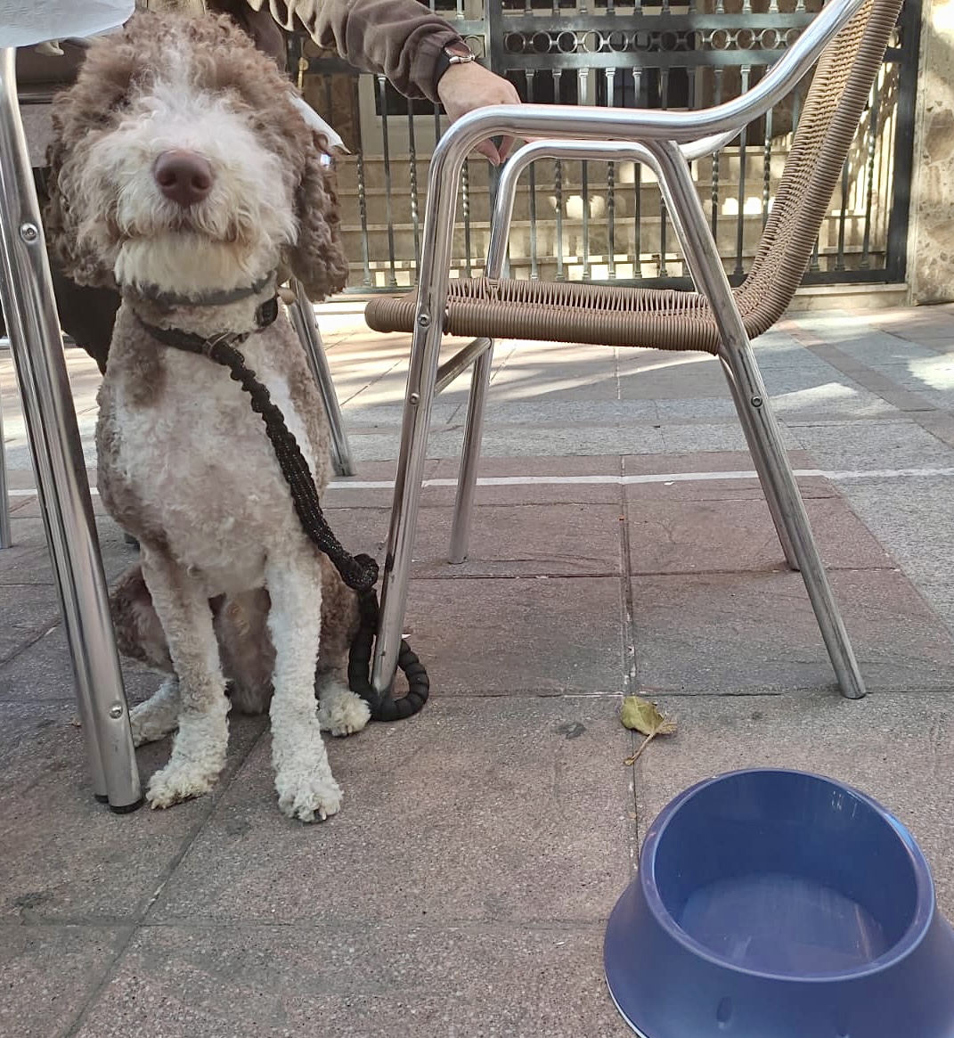 Sin embargo, nada más sentarnos la camarera Jésica sorprendió a nuestra mascota, con un buen bebedero con agua, el cual lo agradeció enormemente. Para seros sinceros, ya con esto a nosotros ya nos habían ganado.