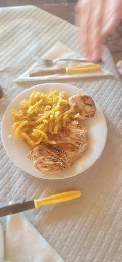 SI QUIERES COMER UNA BUENA CARNE ESTE ES EL SITIO. La carne estaba tremendamente buena y jugosa la verdad, aunque tambien destacar que las patatas fritas y refritas..era aceite y sal muy pasadas de sal y se notaban que estaban refritas venian pegadas, vamos que solo valia la carne en ese plato 😅 Precio calidad en cuanto a carne perfecto! Ya que es a la brasa donde se ve al entrar, un lugar muy acogedor , la bebida 2.60 un vaso de tinto de verano , en la carta pone jarrita... yo pedi vaso y me pusieron ese.., pero bueno todo ok. el postre de turron un 7/10 estaba bien, buena porcion. La cuenta fueron unos 30e no esta mal para dos. ( 2 bebidas,2 platos principale y 2 postres) Esta bien, es un sitio donde si tienes ganas de carne es el sitio! la carta se basa sobre todo en carne . No tienen pescado En general estubo bien fuimos de paso. Ambiente agradable. Servicio bueno!