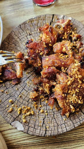No dejar de probar sus aclamados torreznos, dignos de mención y repetición. Tomamos dos y una tempura de verduras con miel.