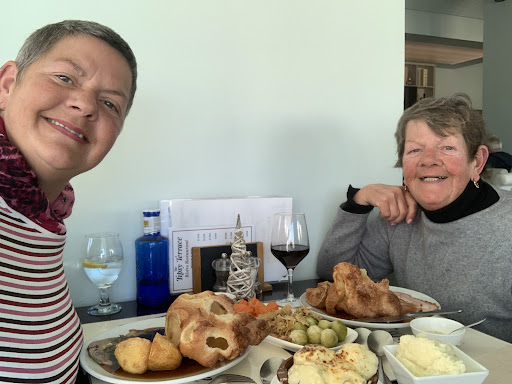 We had a short break and then the Xmas lunch arrived. It was everything a Xmas lunch should be with succulent turkey, stuffing, pigs in blankets and roast potatoes. All the veg you could possibly want was there together with mashed potatoes plus my favourite, bread sauce. It was great. Unfortunately, there was so much that we couldn’t finish it, let alone attempt the Xmas pudding we’d ordered or the mince pies. However, the really helpful staff bagged it up for us and we will have our Xmas pud this evening. We couldn’t find fault with anything- it was truly terrific and we would recommend this wonderful restaurant