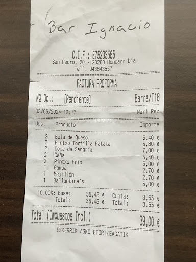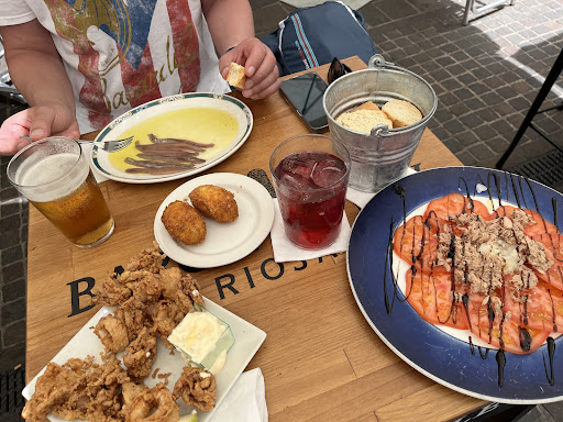 We stopped here for lunch. Menu was also available in French and English. Unfortunately, the waiter was not able to communicate with us in either language. We chose some typical dishes such as croqueta and calamar which were really tasty. The tomato salad was very delicious. Tinto di verano watery and not yummy. Service was not really good (once served, waiter didn‘t care for us and seemed to be overstrained: brought our check to the neighbors table and once we have paid, he brought our neighbor’s food to our table :-)) Overall ok but no...