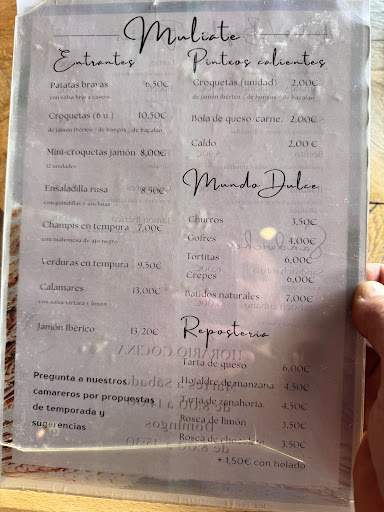 Read moreSoy vecina de Muliate y he acudido a este bar unas 6 o 7 veces. Pondría 5 estrellas por el local y 4 por ha comida pero mi puntuación baja hasta 2 estrellas por la atención. L@s camarer@s no son lentos, lo siguiente. Tardan en darse cuenta de q estas, en atenderte y hasta en cobrarte. En lo unico q no suelen tardar es en servir, yo creo q porque el problema no esta en cocina sino en l@s camarer@s. Es desesperante y no los dias q hay mucha gente, no, siempre y aunque no haya nadie (estan comentando cosas personales mientras tu estas delante esperando...y pasan!). Esto no me ha pasado una vez sino siempre q voy. Y no lo pienso yo, lo hemos comentado mientras esperamos entre varios clientes. Este bar lo tiene todo para ir bien: el barrio es cada vez más grande y calidad precio es muy correcto para la zona. Yo le daría un consejo al dueñ@: cambia de camarer@s y cuando encuentres a algun@ espabilad@ mantenlos. Queda muy mal q en un local haya...