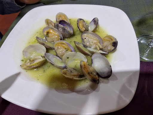 This is by far the most disappointing meal we had in Hondaribbia. We had an egg "mollet" with prawns. The dish was like a watery version of an omelette. The fish soup had 2 clams and three small bites of fish. Rather flat in taste. The main dish chipirones in ink was too salty for me to finish and the clams in green sauce was just ok. Nothing to shout about. With a bottle of white wine at 11 euro the bill came up to 71.50 euro. We left without ordering dessert. Service was fast and efficient...