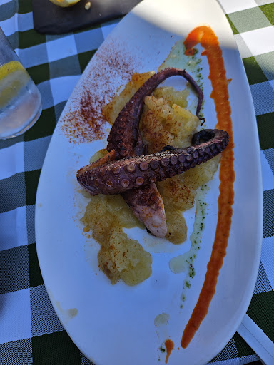 Arrived late (10pm ish in March) in Hondarribia after a sunset night hike on Jaixkibel, (a must do). Most restaurants were closed and the few open had already closed the kitchen, luckily for us, this place was still open. Jaixkibel Jackpot! Sat outside on the open terrace around 22h in March was simply amazing! Home made ham croquettes were lovely, nice bits of ham covered in tasty croquettes bechemol goodness, side plate of the region red txistorra sausages came out fast with a nice cold fresh beer and some bread to mop up the chorizo juices. Thought we'd ordered the Xipirons but somehow got the pulpo (octopus tentacle), definitely our fault in communication, anyway wasn't worth mentioning, was really tasty served on a bed of yummy potatoes. True it's a regional classic and this one didn't disappointed. By now we were pretty full and relieved not to see a plate of Xipirons arrive ;). We shared everything by two. A light after hike feed on the streets of hondarribia.. The lady who served us was nice and friendly and took care of her late arriving hungry...