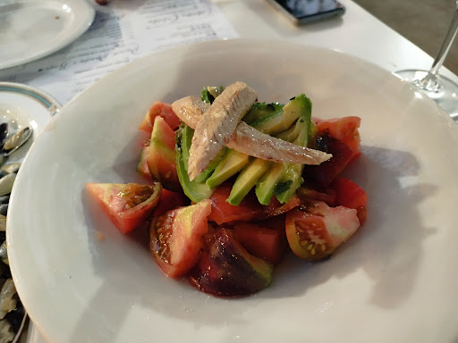 Como tapa, para cuatro personas, nos ponen un plato de tamaño mediano de una especie de salpicón de marisco, en el que el marisco era bastante escaso, siendo mucho más predominante el pepino y el pimiento, el tomate algo blando y un par de trocitos de surimi (sucedáneo de pescado). Por otro lado, estaba bastante salado, con lo cual comimos algunos trozos y poco más.