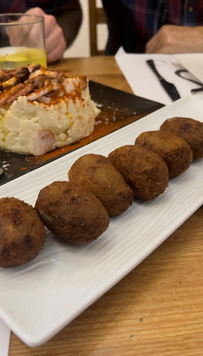 Read moreBuena experiencia, fuimos con nuestros 2 perretes y no nos pusieron pega alguna en la terraza. Nos atendieron muy bien y muy amablemente. Pedimos ensaladilla de gambón que estaba rica,sabía a gambón y tenía trozos de gambón. La araña frita está bien adobada y rica pero se les pasó de fritura y por ello estaba un poco seca por dentro. Las croquetas de cola de toro estaban exquisitas y muy jugosas aunque a primera vista parecían estar mal rebozadas y fritas, y aunque el rebozado no era perfecto es la típica croqueta que hasta comiéndote la masa cruda está deliciosa. Y la tarta de galleta con chocolate blanco estaba deliciosa, con su galleta crujiente por fuera y su galleta mojada al...
