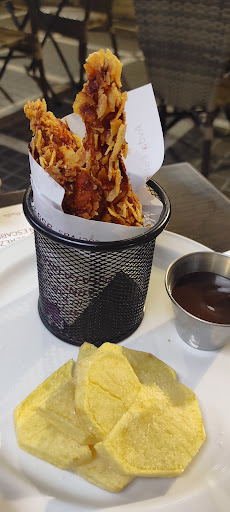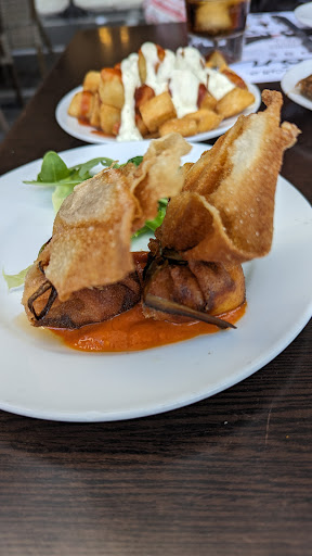 Agradable Lugar , comida ... *La Ensaladilla es una joya al paladar ,de las mejores que probé, le podría dar un 9. *Pincho de lomo delicioso aunque su salsa de acompañamiento no es la adecuada ... Puntuó con un 6'5 *Hamburguesa de Choco y gamba : Nos sorprendió bastante , rica y saborosa ,pero no nos pareció buena idea ese tipo de pan típico de hamburguesa americana ,quizás sería mejor un pan algo crujiente y fino ,adornado con un par de gambas peladas. Aunque para el precio que ponía en la carta ,está bien. *Tartar de Salmón: Bastante abultado para ser un tartar ,pero rico al comerlo. El Foie : Bueno , con buena presencia ,aunque no es lo más normal presentarlo en una piedra lisa. Algo faltó de sabor explosivo. Pollo Garrapiñado : Muy sequeron ,no lo arregla a ni la salsa ,nada recomendable. EL SERVICIO : El Camarero que nos atendió fue muy amable ,muy profesional dando consejos al coger la comanda, correctísimo en su trato al esquivo de nuestro comportamiento. Todo servido algo rápido ,sin apenas espera y acordé a no tenerlo todo junto. CON RESPECTO AL PRECIO :. Quitando la Ensaladilla y Hamburguesa , todo lo demás nos pareció algo sobrado de precio. Pero lo cierto es que valio la pena sentarnos a...