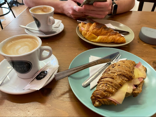 The atmosphere is that of a young cafe that attracts young people who want to study or catch up, so in this sense it’s relatively modern compared to the vast majority of coffee shops in Huelva. I liked that they had quite an enticing vetrine with different croissants and some pastries - included a lemon tart. I sadly didn’t like my cortado; it was boiling and the coffee seemed burned to me, leaving a bad aftertaste in my mouth. I was not expecting this from such a place, but it’s also true that in many coffee shops in smaller cities coffees aren’t specialty. I do recommend it though for the variety of their offering and for...
