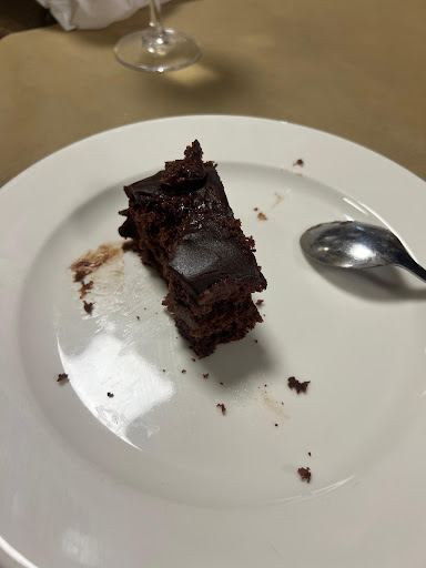 Postre: Para cerrar con broche de oro, confiamos nuevamente en la recomendación de Juan, y probamos la tarta de chocolate. Cada capa contaba una historia: un exterior de chocolate oscuro intenso, un delicado toque de mermelada de fresas que añadía acidez y frescura, un bizcocho perfectamente húmedo, y un mousse de chocolate que aportaba suavidad sin ser empalagoso.