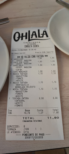 Oh lala is your typical cafe along the main shopping street in Huelva. There is nothing particularly special about this cafe, nothing that stands out, but I have always had a great time here with friends. The serving sizes are big and the cafe is very affordable as well. I am biased in that I loved coming here and that is why I have given it 5 stars, but if you are looking for outstanding coffee or baked goods in Huelva, there are better places (though this is of...