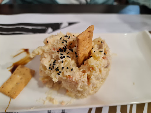 En nuestra última visita, esta fue nuestra elección de platos: Tiras de choco con mostaza dulce Tartar de atún y yema curada Canelón de marisco Wok de tallarines y langostinos Samosa con crema de yogur amargo y guacamole Revuelto de boletus y crema de castaña