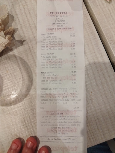 Read moreDe vergüenza , haces un pedido te dicen q lo tienes q recoger en 50 minutos. Pasan esos minutos y te dicen q no hay orden de pedido que lo mismo es lo del teléfono que lo pedido allí . La cocina muchísima gente y es muy pequeña ahí no se pueden trabajar , pedimos hablar con el gerente decía que no salía porque él estaba haciendo pizza de cuando un gerente hace pizza ? Un gerente coordina a su equipo , el personal no sirve para trabajar ahí , cuanto antes lo cierren , mejor. Así no quiebran. Dice la cajera que ella no sabe cómo funcionan los Telepizza porque es una franquicia de Sevilla. Entonces a los empleados no se le forman ? Tantas inspecciones para tantas cosas y...