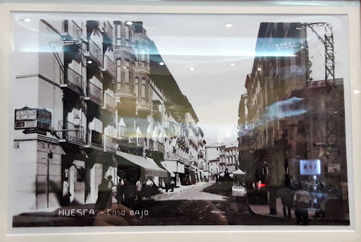 Acompaño a esta reseña una fotografía antigua que hay enmarcada en el interior del local en la que se ve cómo era su exterior y los aledaños del Coso Bajo antes de 1936.