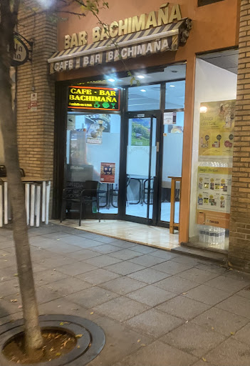 Hemos estado desayunado esta mañana en este bar de Huesca y por dos bocadillos de tortilla francesa rellenas de jamón y dos cafés con leche “ 6.40 “ una pasada todo tierno recién hecho muy bueno . Estos bocadillos les llaman “ pulgas “. Pero calidad precio muy bien . Otra vez comimos en el bar Bachimaña pinchos de bacalao con tomate y albóndigas de cerdo y ternera con vinos de la bodega de Barbastro “ Alquezar “ y viñas del Vero todo muy bueno y exquisito. Nos han atendido muy bien María y Javi Felicidades . La calidad de todo “ suprema “ Lo recomiendo a todos mis amigos si paráis en Huesca pinchos del Bachimaña ,...
