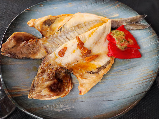 Me gustó la presentación de todos los platos y su sabor también, excepto la lubina que le faltaba algo de acompañamiento (unas patatas fritas, unos pimientos, algo Lo podéis ver en la foto). Quiero destacar los caracoles que sirvieron en la mesa de al lado que me sorprendieron. Un flameado y una presentación entre llamas genial y dejaron un olor muy bueno.