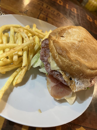 Nuestra experiencia DETALLADA ha sido: Sentarnos y un chico muy simpático nos ha preguntado si lo sabíamos. Aún no habiamos visto la carta asique hemos pedido 2 jarritas de cerveza para ir empezando. Nos las traen CONGELADAS, con escarchita buena. Se agradecía porque pegaba el solete. Detalle muy bueno. Lo único malo es que no eran muy grandes, nosotros que somos de mucho beber... Pero acorde con el precio 1.60... Perfecto de precio. Pedimos de comer un par de hamburguesas y nos informan que van a tardar mínimo 30 minutos. Por qué? No se sabe. Le preguntanos por la calidad de la carne, como amantes de carne que somos, y nos cuenta que no es mala, que es gordita. La pido EXTRA POCO HECHA y me dice que OK. Efectivamente, esperamos 35 minutos y nos trae 2 hamburguesas con pan de chapata (mas bien bocatas). Los ingredientes... Bueno jaja no se muy bien que decir, me he encontrado una rebanada de pan bimbo en medio de la carne. No era necesario. De verdad. A veces menos es más. Da un poco sensación de que se ha querido rellenar con cosas la burger con lo que sea para justificar los 10.50. Pasamos a la carne... La carne NO era de vacuno, cosa que deberían especificar. Era medio, cerdo medio vacuno (imagino). Y claro... De poco hecha imposible, lógico y bien. Acompañada de una ración bastante escueta de patatas, que estaban bastante buenas por cierto. He de romper una lanza a su favor y decir que los complementos de la hamburguesa (huevo, bacon (que creonque era jamon serrano), pepinillo...) estaba bueno y parecía fresco. En resumen, 4 jarritas de cerveza, y 2 hamburguesas, 25€. Creo que está bien para comer algo así de paso. También es cierto que otros platos de menú que sacaban tenian pinta bastante decente. Juzgo lo que he probado. Gracias por el servicio que ha sido muy bueno (excepto...
