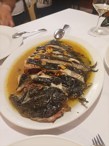 Read moreAmbiente familiar, mesa y silla cómoda, servicio impecable, muy muy atentos. Decoración que pasa completamente desapercibida. Raciones abundantes, unos pimientos con anchoas muy buenos, callos suaves y sabrosos, el rodaballo excelente. Pero no se puede sacar a la mesa un chuletón humeante con tanto aceite salpicando y quemando, te queda la ropa imposible y las gotas hirvientes te queman las manos aparte del humo en la sala, a pesar de que pusieron el aire acondicionado. Por eso no doy la estrella 5. La comida es muy buena, pero el ambiente no es como para agasajar a un invitado. Mejoraría cuidando eso...